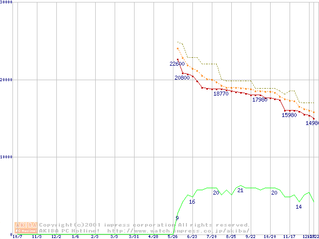 WD Caviar (7200rpm,UltraATA/100,2MB)の最安値推移