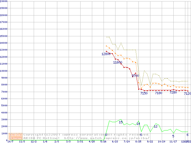Socket A (Spitfire,PGA,FSB 200MHz,L2 64KB)の最安値推移
