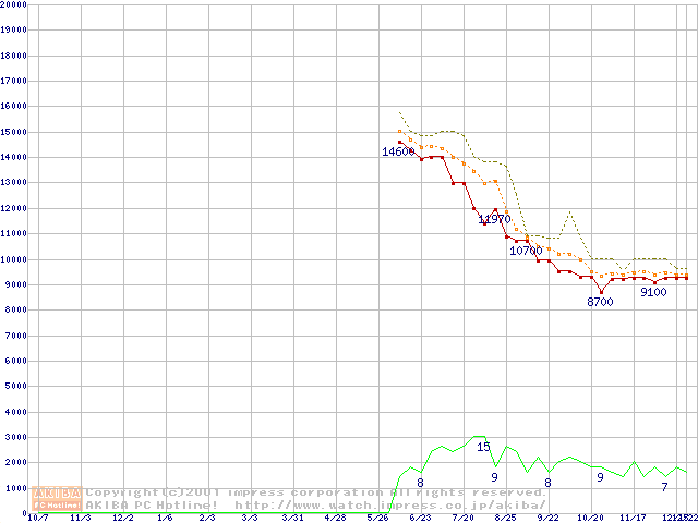 Duron 950MHz リテールパッケージの価格推移