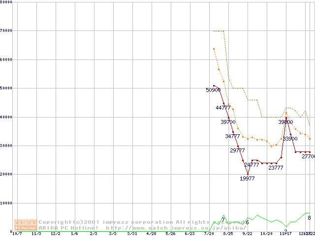 PC133 SDRAM DIMM CasLatency=3 ECC対応 Registeredタイプの最安値推移