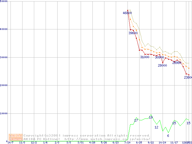 Pentium III-S 1.13GHz FC-PGA2 リテールパッケージの価格推移