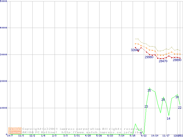 CPU主要製品(最安値2万円~3万円未満)の最安値推移