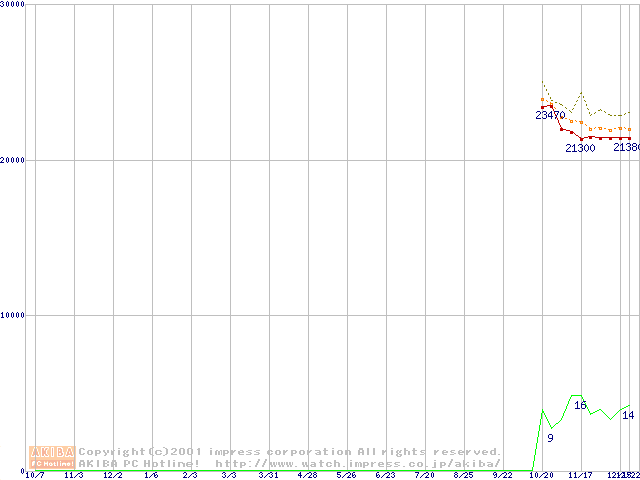 Socket A (Palomino,PGA,FSB 266MHz,L2 256KB)の最安値推移