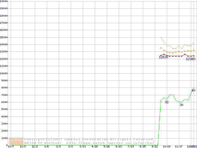 Celeron 1.2GHz FC-PGA2 リテールパッケージの価格推移
