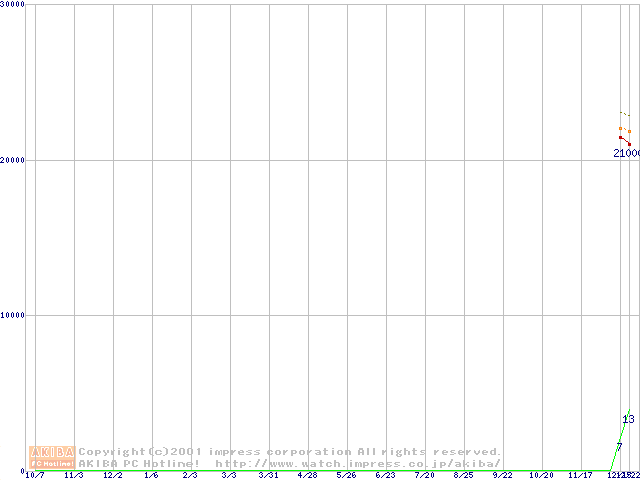 Travelstar 40GN (9.5mm,4200rpm,UltraATA/100,20GB/Platter,2MB,流体軸受)の最安値推移