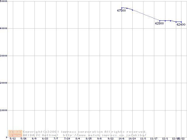| [↑前グラフ]: | Travelstar 60GH (12.5mm,5400rpm,UltraATA/100,2MB,流体軸受)の最安値推移 |
