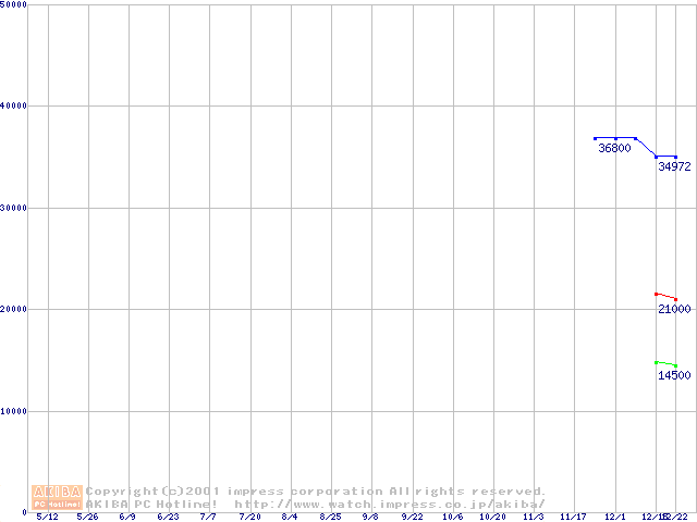 | [↑前グラフ]: | Travelstar 48GH (12.5mm,5400rpm,UltraATA/100,2MB,流体軸受)の最安値推移 |