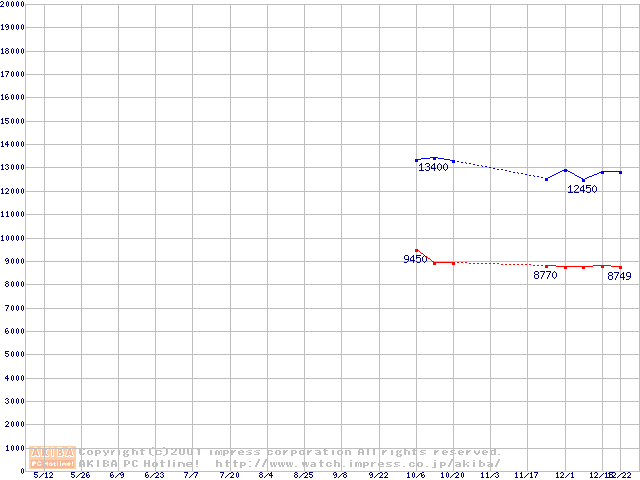 | [↑前グラフ]: | Travelstar 15GN (9.5mm,4200rpm,UltraATA/100,512KB,流体軸受)の最安値推移 |