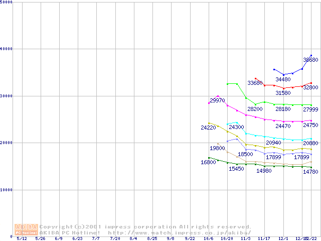 | [↓次グラフ]: | Socket A (Palomino,PGA,FSB 266MHz,L2 256KB)の最安値推移 |