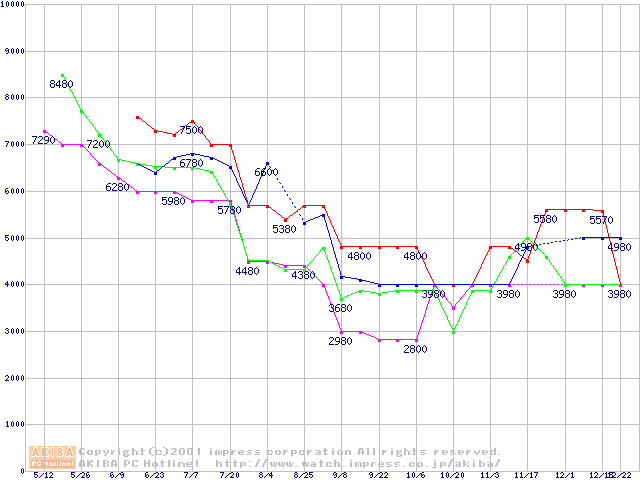 | [↑前グラフ]: | Socket 370 (PGA,FSB 133MHz,L2 64KB)の最安値推移 |