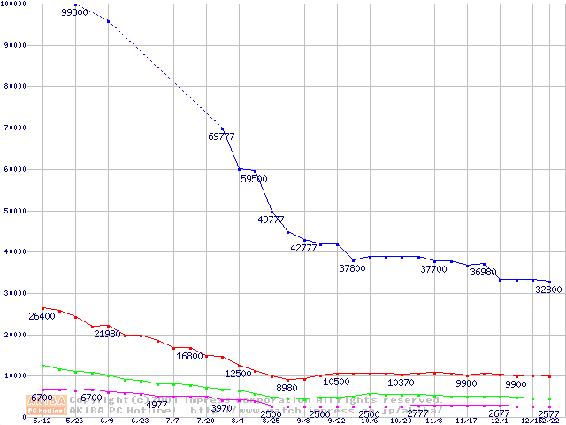 | [↓次グラフ]: | PC800 DRDRAM RIMM ECC対応の最安値推移 |