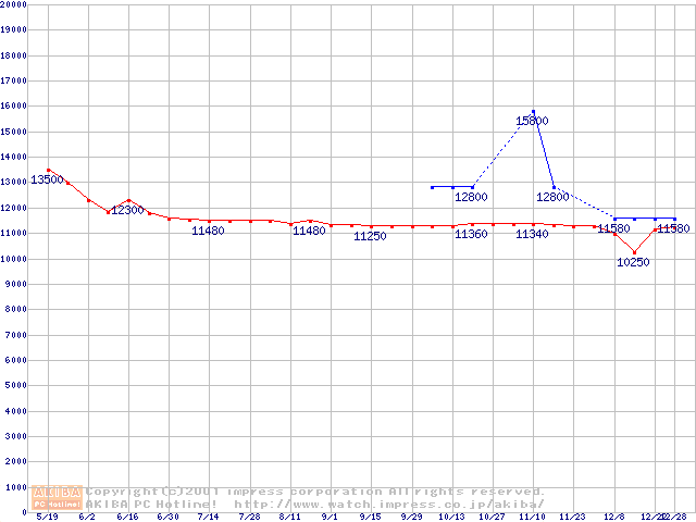 | [↑前グラフ]: | HDD 20GB~30GB未満(7200rpmクラス)の最安値推移 |