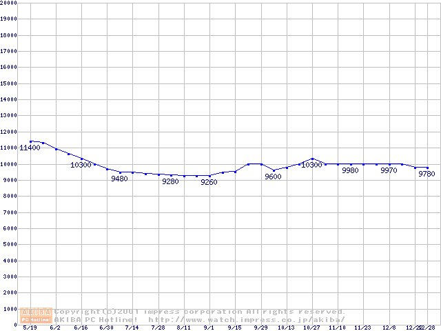 | [↑前グラフ]: | HDD 20GB~30GB未満(5400rpmクラス)の最安値推移 |