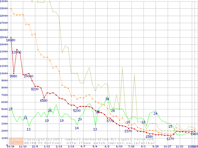 PC133 SDRAM DIMM CasLatency=2の最安値推移