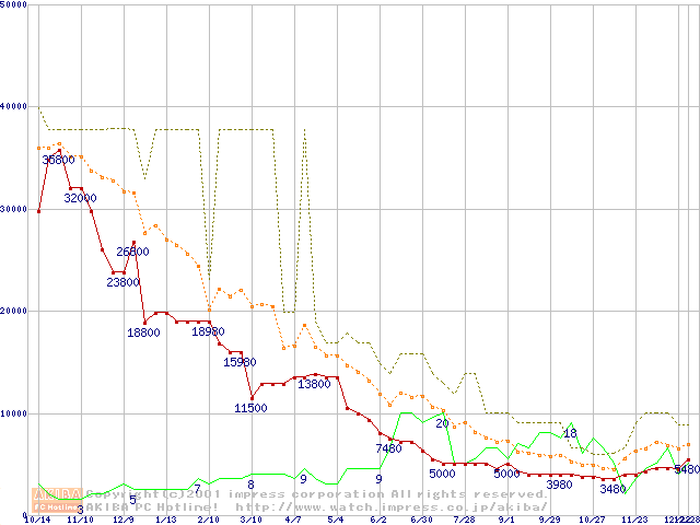 メモリ主要製品の最安値推移