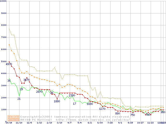PC133 SDRAM DIMM CasLatency=3の最安値推移