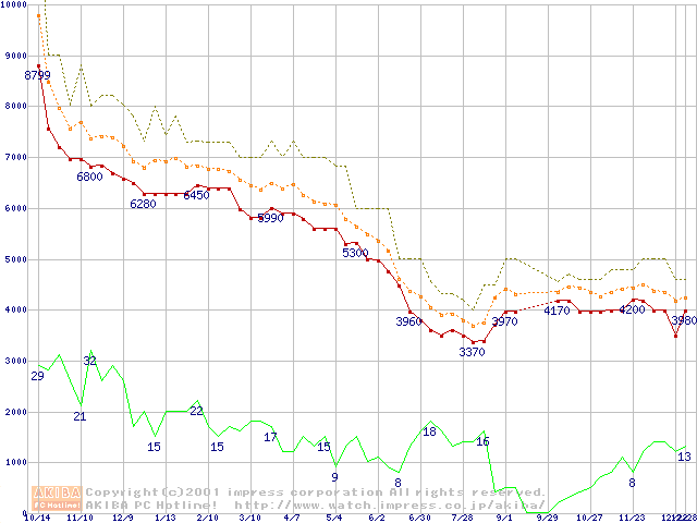Socket A (Spitfire,PGA,FSB 200MHz,L2 64KB)の最安値推移