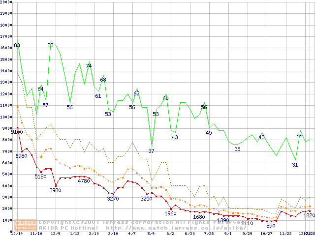 PC100 SDRAM DIMM CasLatency=2の最安値推移