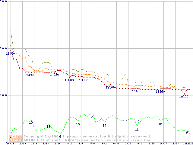 WD Caviar (7200rpm,UltraATA/100,20GB/Platter)の最安値推移