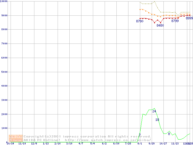 Deskstar 60GXP (7200rpm,UltraATA/100 2MB)の最安値推移