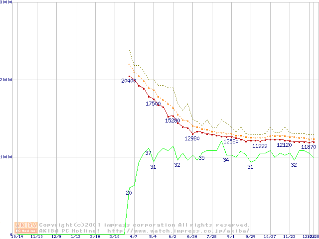Deskstar 60GXP (7200rpm,UltraATA/100 2MB)の最安値推移