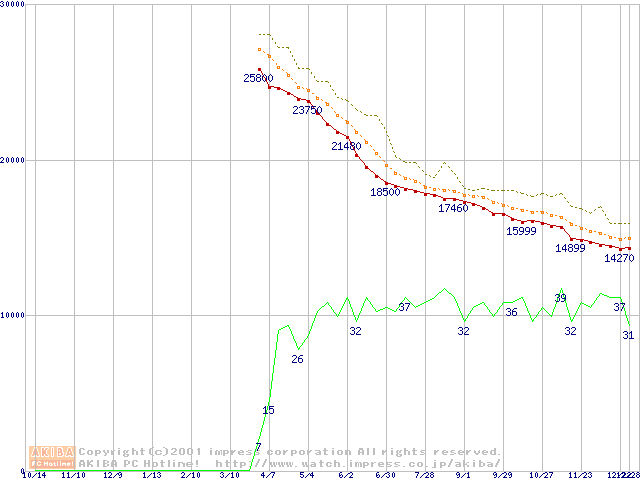 Deskstar 60GXP (7200rpm,UltraATA/100 2MB)の最安値推移