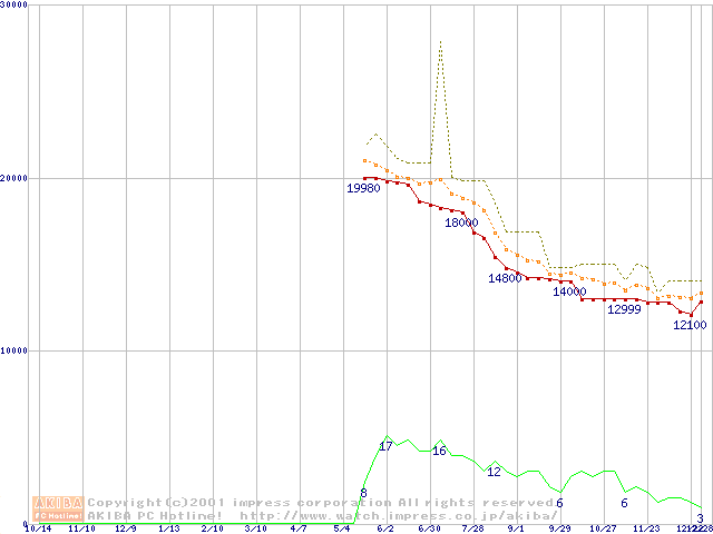 DiamondMax 536DX (5400rpm,UltraATA/100,33.3GB/Platter)の最安値推移