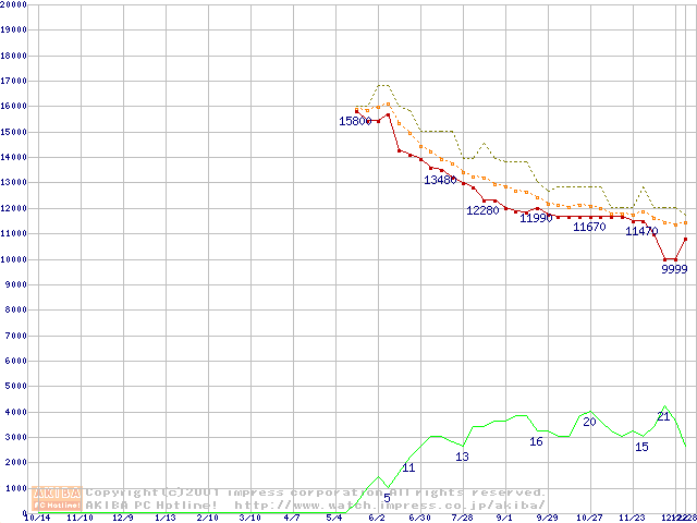 MPG3xxxAH-E (7200rpm,UltraATA/100)の最安値推移