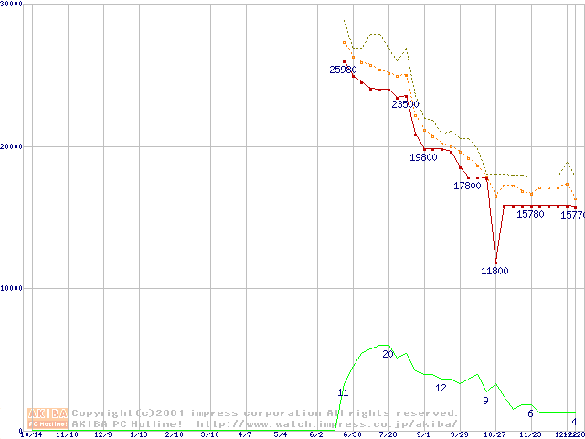 Socket A (Palomino,PGA,FSB 266MHz,L2 256KB)の最安値推移