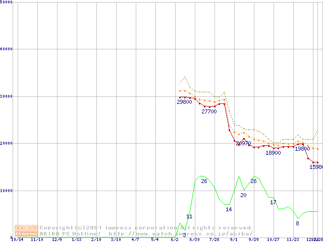Socket A (Palomino,PGA,FSB 266MHz,L2 256KB)の最安値推移