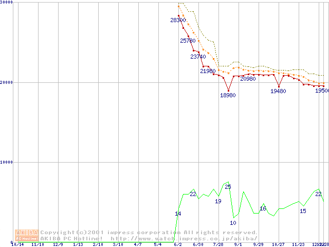 WD Caviar (7200rpm,UltraATA/100,2MB)の最安値推移