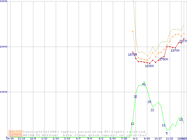 Pentium 4 1.5GHz(478pin)リテールパッケージの価格推移