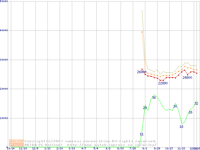 Pentium 4 1.7GHz(478pin)リテールパッケージの価格推移