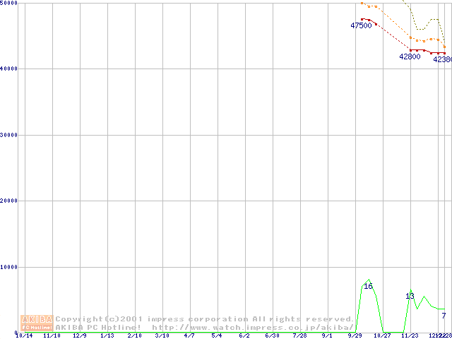 Travelstar 48GH (12.5mm,5400rpm,UltraATA/100,2MB,流体軸受)の最安値推移