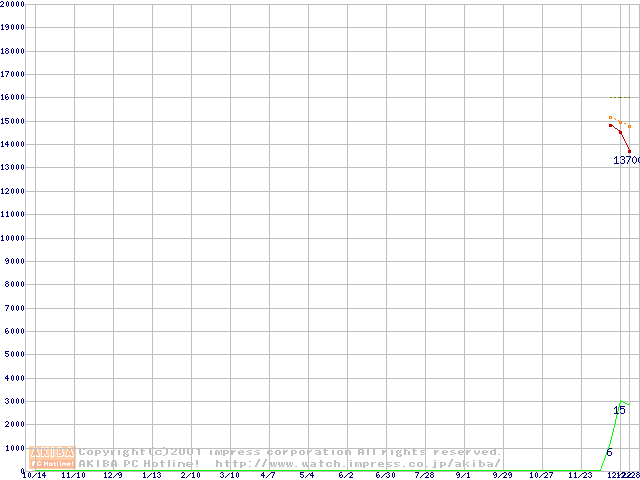 Travelstar 40GN (9.5mm,4200rpm,UltraATA/100,20GB/Platter,2MB,流体軸受)の最安値推移