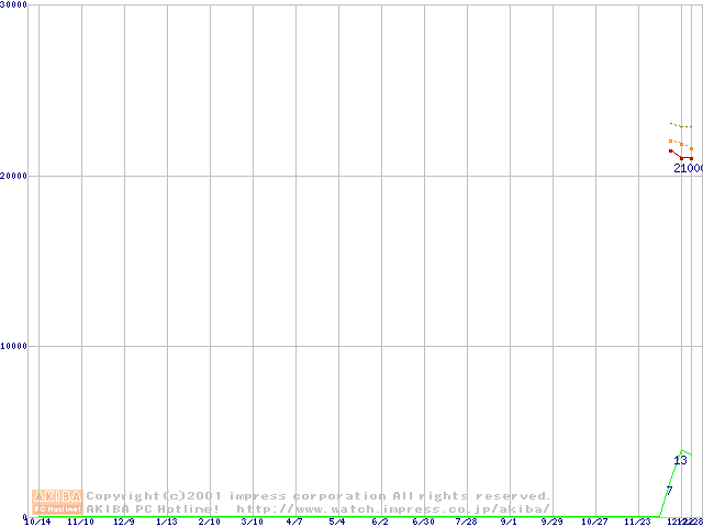 Travelstar 40GN (9.5mm,4200rpm,UltraATA/100,20GB/Platter,2MB,流体軸受)の最安値推移