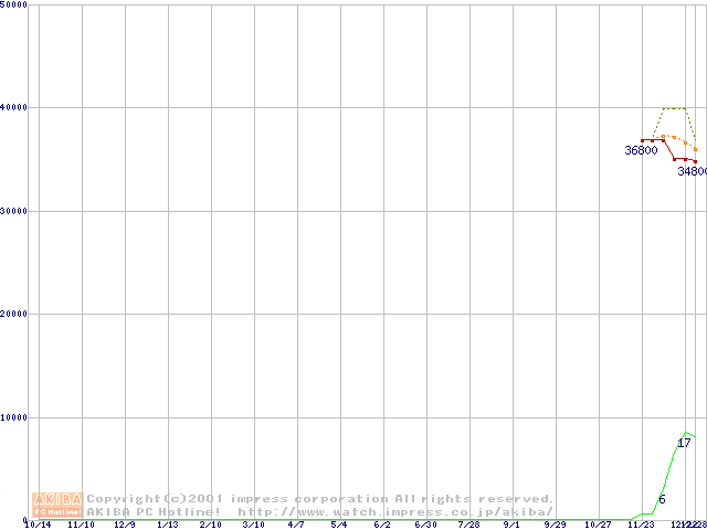 Travelstar 40GN (9.5mm,4200rpm,UltraATA/100,20GB/Platter,2MB,流体軸受)の最安値推移