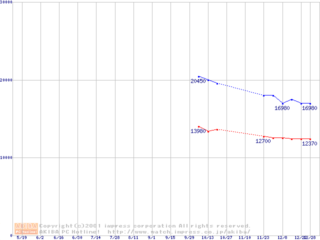 | [↓次グラフ]: | Travelstar 15GN (9.5mm,4200rpm,UltraATA/100,512KB,流体軸受)の最安値推移 |