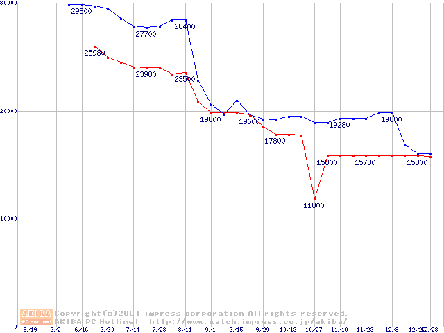 | [↑前グラフ]: | Socket A (Palomino,OPGA,FSB 266MHz,L2 256KB)の最安値推移 |