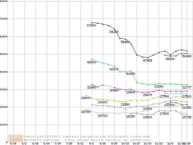 Socket 423 (PGA,L2 256KB)の最安値推移