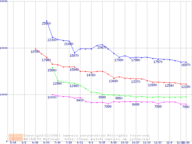 | [↓次グラフ]: | Deskstar 120GXP (7200rpm,UltraATA/100 2MB)の最安値推移 |