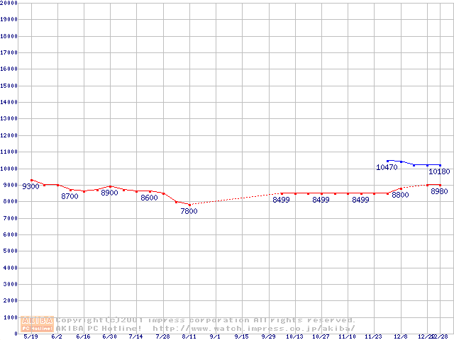 | [↑前グラフ]: | WD Caviar (5400rpm,UltraATA/100)の最安値推移 |