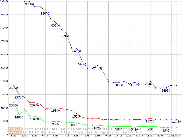 | [↑前グラフ]: | PC800 DRDRAM RIMMの最安値推移 |