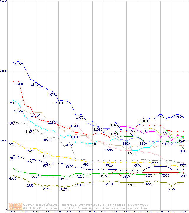 Socket A・FSB 200MHzの最安値推移