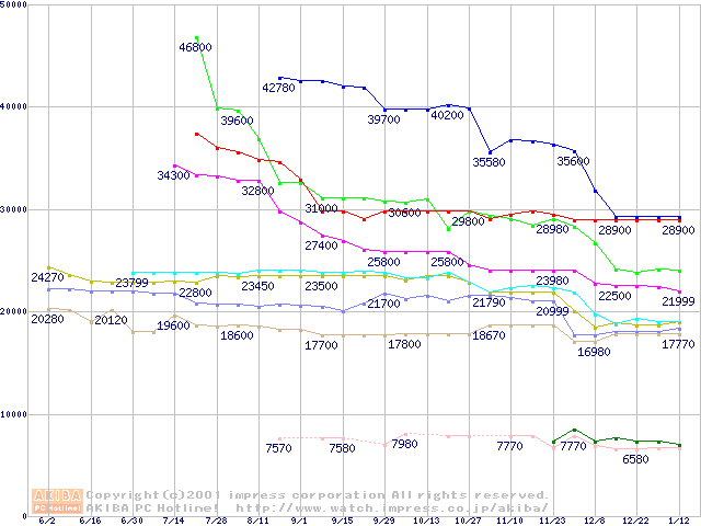 Socket 370・FSB 100MHzの最安値推移