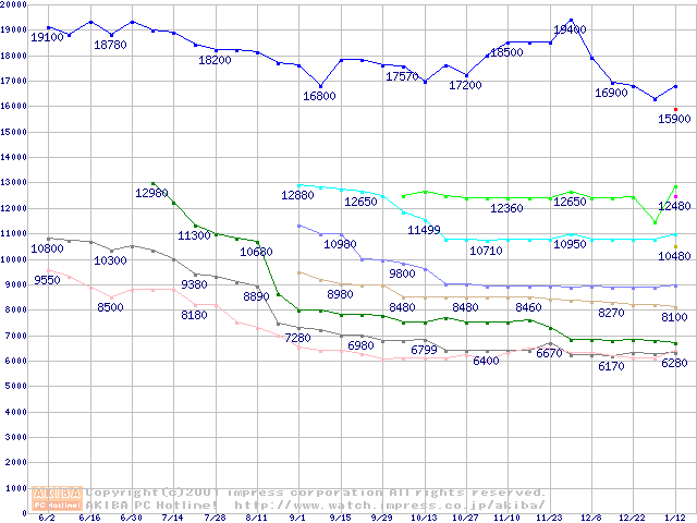 Socket 370・FSB 133MHzの最安値推移