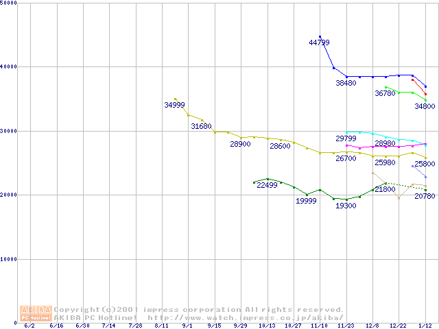 HDD主要製品(最安値1万5千円~2万円未満)の最安値推移