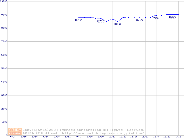 | [↑前グラフ]: | HDD 100GB以上(5400rpmクラス)の最安値推移 |