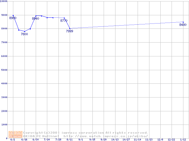 HDD 10GB~20GB未満(5400rpmクラス)の最安値推移
