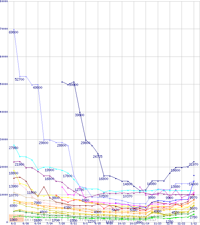 メモリ主要製品の最安値推移